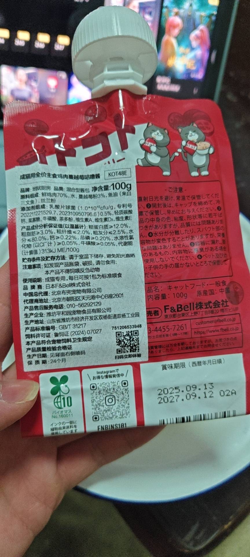 - 【6袋】地狱厨房 鸡肉蔓越莓咕噜酱 成猫用 100g/袋