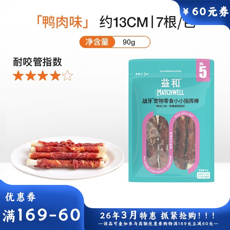 益和 战牙系列 鸭肉五寸棒犬用磨牙零食 90g